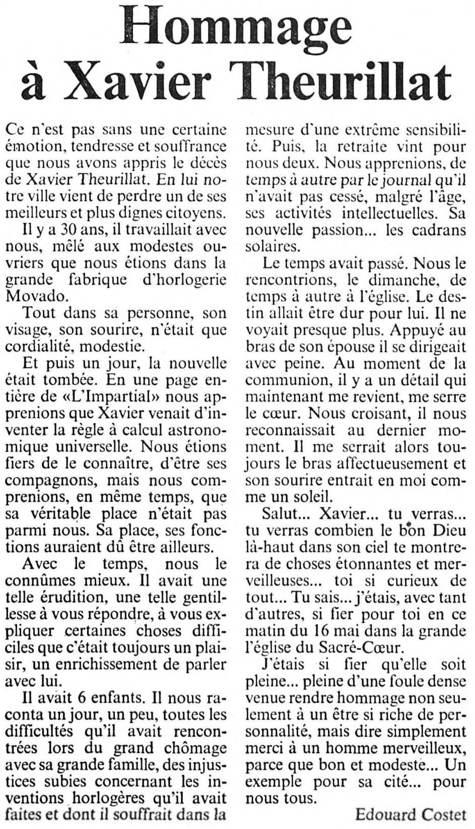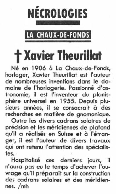 | Naissance | Xavier J. Theurillat est né à CH-2300 La Chaux-de-Fonds, Suisse, le 11 mai 1906. |