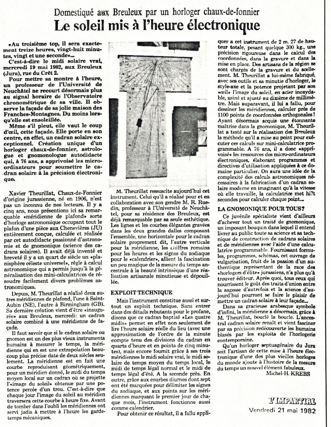 La dénomination du cadran "Les quatre midis" placée en bas à gauche avec la date MCMLXXXI s'explique de la manière suivante: