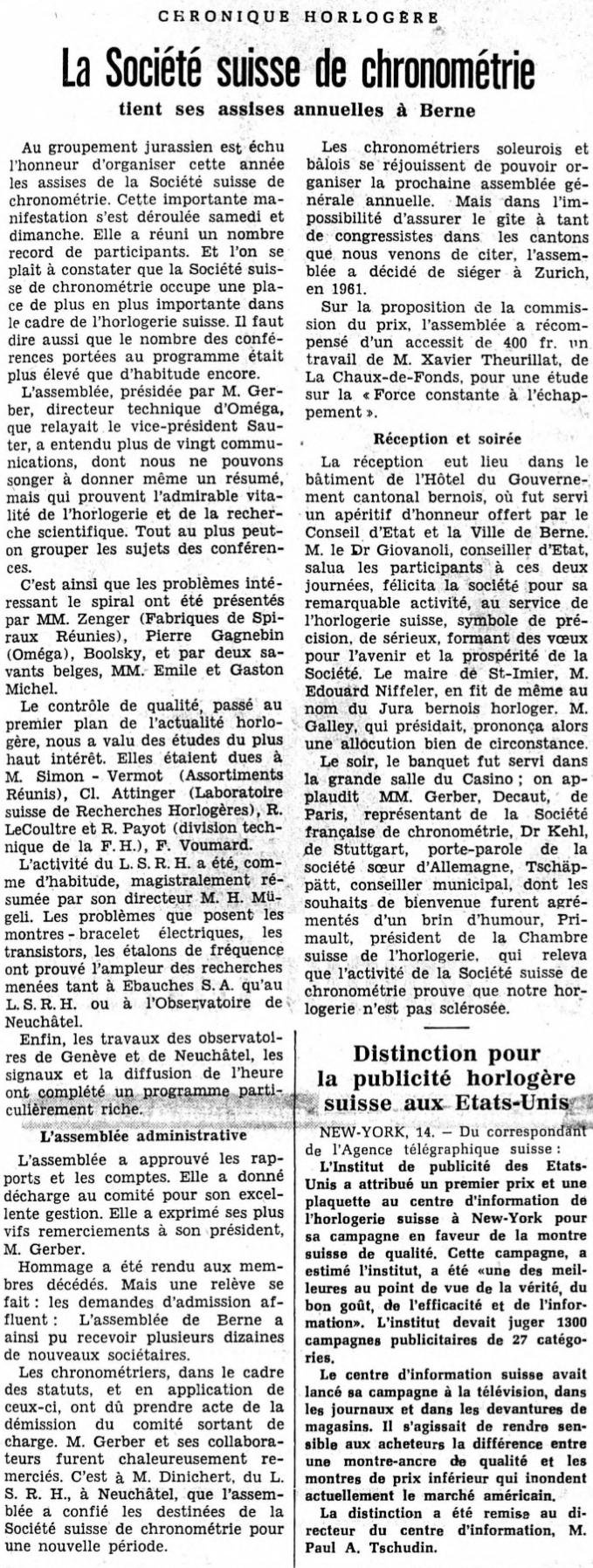 Société Suisse de Chronométrie: accessit 1960